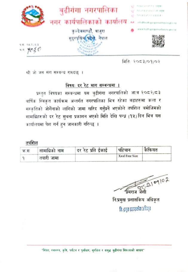 दररेट पेश गर्ने सम्बन्धि सूचना ।