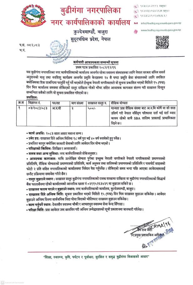 अनमी पदका लागी कर्मचारी आवश्यकता सम्बन्धि सूचना ।।